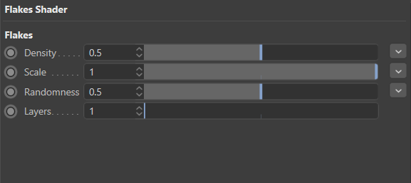 Defines the proportion of the plane covered by flakes. A 0.5 density means that 50% of the surface is covered by flakes, the other 50% produces no flakes (a vector 0.5 0.5 1.0, in tangent space it has no effect ).