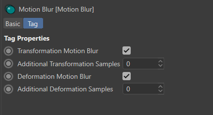Specifies how many additional motion samples 3Delight should use with rendering motion blur. These samples will be applied on the transforms and not on the objects themselves. For example, if you wish to have more accurate motion blur on rotating propeller, increase Additional Samples on the transform that is responsible of the rotation and not on the propeller's geometry.
