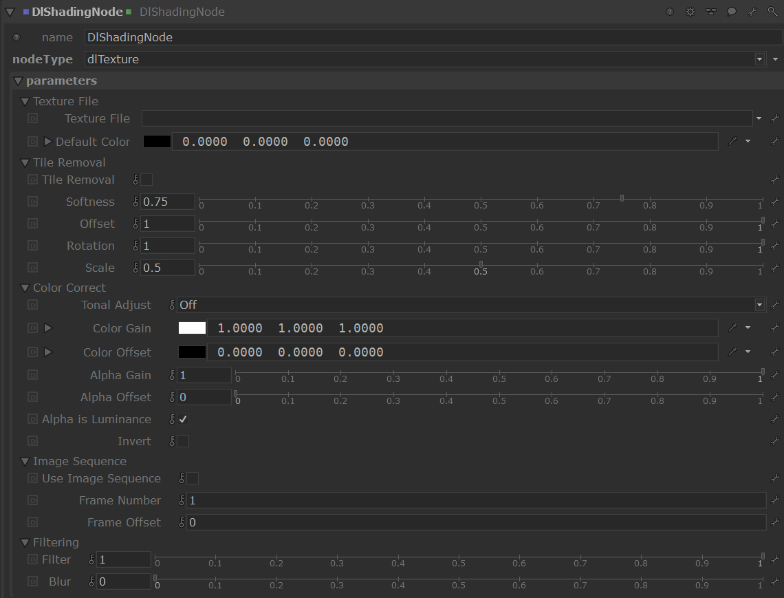 These parameters define the input texture. The default colour is applied when no texture is found or when the texture lookup is outside the UV range.