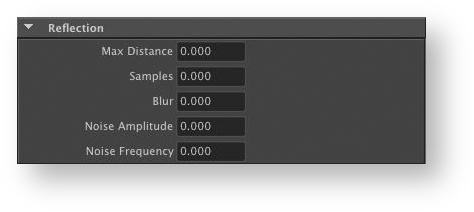 Number of samples for the reflection. Lower sample counts produce noisier reflections. The required number of samples to get noiseless reflections varies from case to case; it depends on the reflected objects and the value of the Blur attribute. In some cases, 2 to 8 samples may suffice. In some other cases, hundreds of samples may be required to achieve a noiseless result.