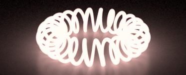 This is a simple example showing a filament shaped in a torus rendered as an area light. This Maya scene can be downloaded here.