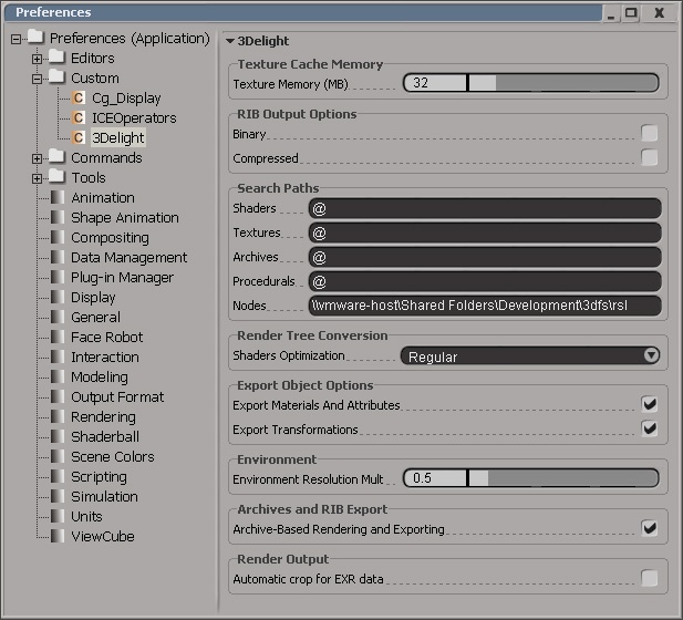 The 3Delight for Softimage Preferences