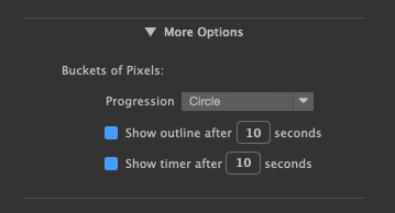 Shows an outline around the bucket (or group of buckets) being processed. This outline will be shown only if the processing time exceed the "n" seconds you specified.  Typically, showing such outline is not useful when buckets are calculated rapidly.