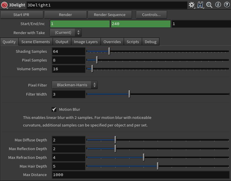 Quality – Contains all the settings related to image quality (filtering, sampling, etc... ).