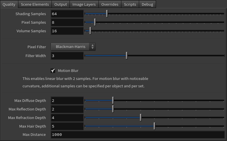 The settings in this section directly affect image's quality. By definition, image quality settings also affect image rendering speed.