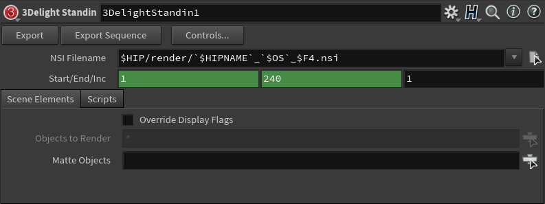 3Delight Stand-in ROP is used to export your working scene geometry and the shaders attached to them on an NSI file.